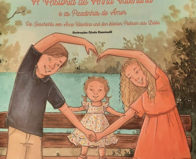 O livro é bilingue, escrito em Português e Alemão, valoriza a diversidade cultural e o contato com diferentes línguas, ampliando o repertório emocional e social da criança.